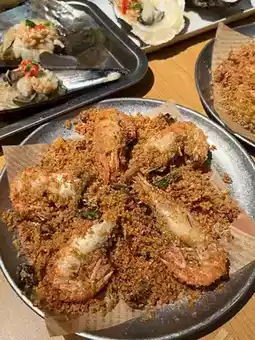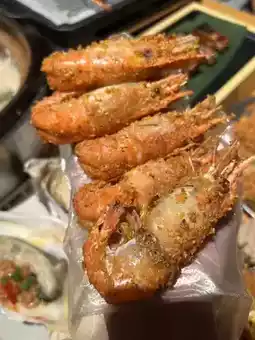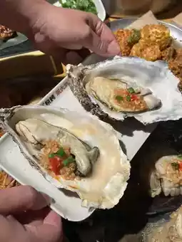 Grilled oysters: 5 two large oysters are selected. They are big enough to be served. They are very fatty and addictive.