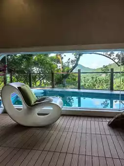 We stayed in a floor-to-ceiling window king room. The homestay offers free shuttle service, and the driver was very friendly 🤭. Upon entering the room, you are stunned by the lush mountain forest and the sea of clouds painting before your eyes! 🌿🌿 One room can hold an entire sea~it's just too beautiful! 🌟