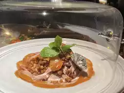The chic interior provides a cozy yet elegant atmosphere, perfect for intimate dinners or business meals.