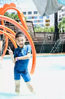 Exclusive perks for all guests: Outdoor white sand beach pool + mini water park + pirate ship (accessible) + mini train + outdoor carousel 🎠 + outdoor climbing maze playground.