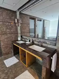 This time, I stayed in a standard king room, which was very spacious. The bathroom was particularly large, featuring two sinks, so there was no need to worry about waiting for the restroom.
