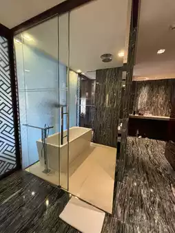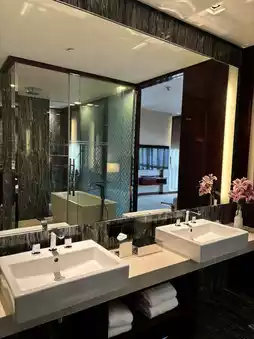 The guest rooms are equally impressive. The beds are wide and extremely comfortable, with mattresses and pillows offering just the right level of firmness. I had an excellent night's sleep. The bathroom area is also very spacious, featuring a thoughtful double-sink design that makes it convenient for multiple people to use simultaneously. The separate bathtub and shower area are well-planned, with glass partitions ensuring a dry and wet separation. The marble finishes add an extra layer of refinement and luxury.