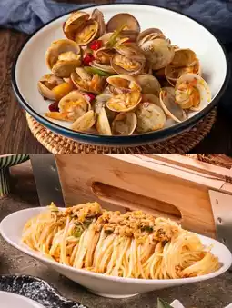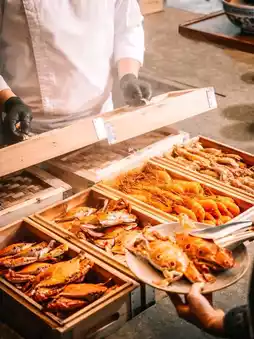 A selection of fresh local three-eyed crabs, clams, razor clams, and other fresh seafood. Prepared to order by the chef, it can be customized. Pairings of your choice
