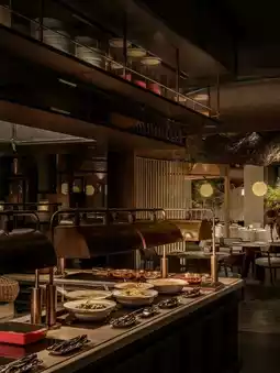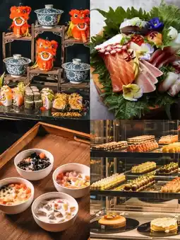 A wide variety of seafood, sashimi, and sushi dishes, along with a variety of Chinese and Western cold and hot dishes, desserts, and cakes, accompanied by a chocolate cascade, ice cream, and desserts, as well as free-flowing juices, red/white wine, and beer. Enjoy a rich and diverse menu of Eastern and Western cuisine.