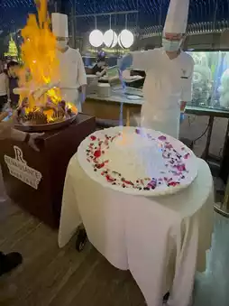- Flame cuisine: Flame steak, flame ice cream live performances, super atmospheric, perfect for the video