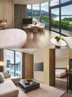 The sea view is unbeatable! 180° panoramic sea view, a huge balcony that takes in the blue sky, sea, and beach all at once! The room is spacious, exquisitely decorated with wooden furniture and soft lighting, warm and comfortable. The bed is big and soft, the bathroom has a dry and wet separation and a large bathtub! Dyson hairdryer, smart toilet, Bluetooth speaker provided, the stay experience is excellent!