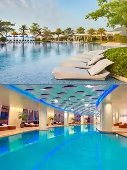 Right at the hotel entrance is a super soft private golden beach, barefoot feels amazing. Watch the sunrise on the beach in the morning, and the sunset by the sea in the evening, very chill~ There are also many coconut trees and an infinity pool nearby! It really feels like being in Sanya!