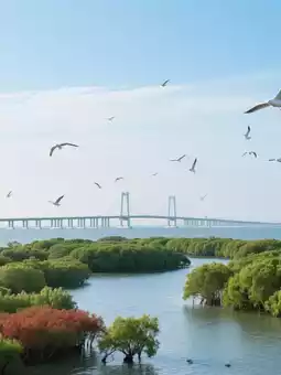4. Xiwang Mangrove Park → Evening shots of “plane + sunset + cross-sea bridge” in one frame, golden hour daily 18:00-18:30
