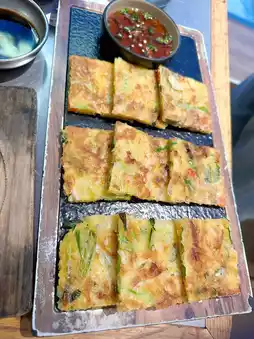 Dongdong BBQ Da Pai Dang has several branches in Shenzhen, this time to the Royal Court Plaza branch, because it is Saturday, so quite a lot of people waiting, this time ordered a 2 to 3 people meal, including pork platter, beef ribs, grilled eel and onion cake and seafood bibimbap, two people simply can not eat, finally packed the onion cake home!