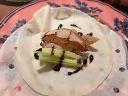 Roasted fresh daily, the duck skin is crispy and melts in your mouth, while the meat is fragrant with the wood-roasted aroma. Wrapped in a lotus leaf pancake, it's topped with chopped green onions, cucumber, and sweet bean sauce. Every bite is incredibly satisfying!