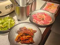 You don't have to grill the meat yourself throughout the whole process. There are shopkeepers who help you grill the meat. Different baking trays use different meats. Their barbecue is quite fresh whether the pork and beef taste, the barbecue is mainly lettuce and garlic, which is not disgusting at all, the stone pot bibimbap in the stone pot is good, and Korean kimchi is good. The dipping table has a buffet of snacks, unlimited continuous.