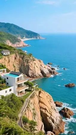 2. **Cycle to Luzui Cliff Boardwalk entrance** - About 20 minutes’ walk uphill, shaded by trees with fresh air - Arrive at [Luzui Mountain Villa] — filming location of "The Mermaid" - Check in at the popular “Mermaid Cave”: a natural sea cave formed by waves, perfect for silhouette photos >✅ Tip: Wear non-slip shoes! Rocks are slippery; bring sunhat and sunglasses! ---