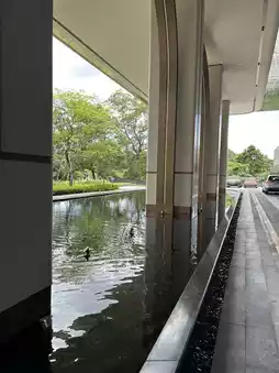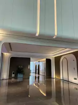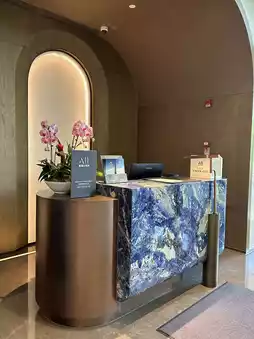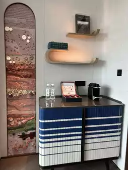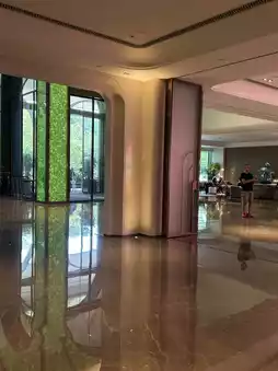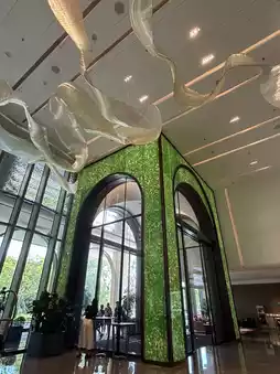 The emerald-textured decoration at the entrance and the nearby natural environment complement each other very well, and entering the hotel lobby has a vip feeling