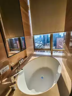 The hotel enjoys a prime location, just 5 minutes from Exit D of Gangxia Subway Station. Nestled in the heart of Shenzhen's Futian CBD, it's surrounded by vibrant and bustling surroundings, offering a vibrant urban experience. The room was well-designed and furnished, creating a pleasant surprise for the birthday person. The bathroom had separate wet and dry areas, and the space was spacious, bright, and warm. Initially, we deducted some points due to a slight odor of cigarette smoke in the assigned room and floor, as well as cracks in the bathtub tile.