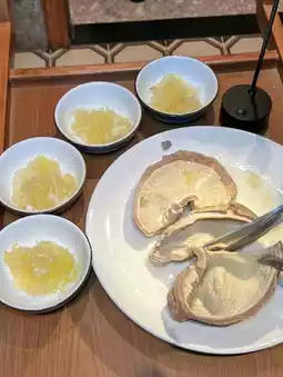 Shunde Gong's [Beef Wrapped in Shark's Fin] (7 taels of shark's fin, pork belly, and chicken) features a fresh pork belly filled with 7 taels of premium shark's fin. The fin is savory, the pork belly is tender, and the chicken is delicious. The broth is refreshing and nourishing, leaving you feeling incredibly warm. The service is attentive, with the waiter handling the entire process, slicing the pork belly and evenly dividing the shark's fin into bowls. This truly nourishing dish leaves you feeling warmed afterward.