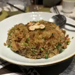 The sticky rice grains are distinct, stir-fried with Chinese sausage, pork belly, and shiitake mushrooms. It's not greasy at all and exudes a comforting homemade flavor with every bite.