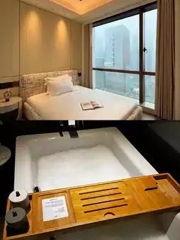 This luxury hotel in Nanshan District is located in the landmark building Shenzhen Bay No.1. The deluxe sea view twin room is surprisingly spacious. Although I didn’t get to experience the 270-degree popular room type, the view of Shenzhen Bay from the floor-to-ceiling window was already stunning. Waking up to blue skies and clear seas in the morning, and enjoying the dazzling city light show at night while lying in the bathtub is just amazing~