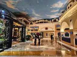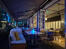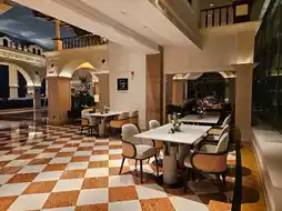 The moment you step into the hotel, you'll be captivated by the luxurious decor of the lobby, as if you've traveled back in time to classical Europe. The hotel is conveniently located near a metro station and large shopping malls. The restaurant is situated right next to the hotel lobby and features a semi-indoor design with both outdoor seating and elegant indoor booths. The space is expansive, with a large fountain outdoors, creating a delightful atmosphere. During the afternoon, it serves as a spot for lunch and afternoon tea, while in the evening, it transforms into a bar-restaurant. Order a signature cocktail and some snacks, and you can easily spend the entire evening here.