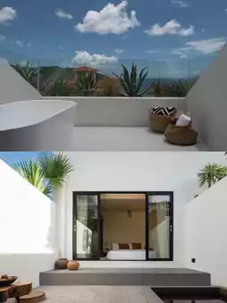 The room is equipped with panoramic floor-to-ceiling windows and a private hot spring bath, allowing you to enjoy the magnificent sea view while lying in bed.