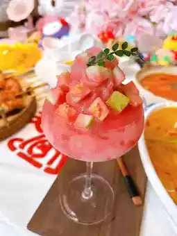 The restaurant features a Jacaranda-themed photo area and a dreamy purple floral waterfall pool, making you feel like you're in a fairytale world😳. The starry house and heart-shaped floral arrangements are perfect for birthdays, anniversaries, or even proposals, adding a touch of ceremony to your celebration. The photos you take here are so stunning that you might hesitate to start eating🤣.