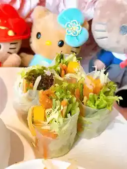 🥳 As soon as you enter, you'll see the entire restaurant decorated with LABUBU and Hello Kitty themes. Not only do you have adorable figurines accompanying your meal, but there are also plenty of photo-worthy spots for you to capture moments. Every corner is thoughtfully designed, even the drinks are themed, making it a perfect place for Instagram-worthy shots💖.