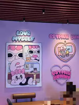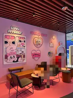This time, I'm sharing a unique Luckin Coffee branch. Most Luckin Coffees you see are takeout shops or have limited seating. This one, located in Shenzhen's Happy Coast, stands out. The pink decor at the entrance captivates you, and once inside, you'll discover it's a collaboration with Easter Bunny from South Korea. Inside, there are plenty of pink photo booths where you can take photos with the adorable Easter Bunny! It's truly a place full of girly charm!