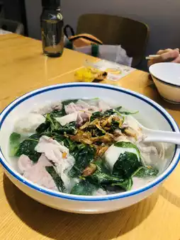 At the Teochew noodle shop on the B2 floor of Wanxiang Food Store at Shenzhen Sungang Station, I ordered a steaming bowl of fish ball and pork hor fun. The sweet broth was fragrant with chopped celery, the hand-made fish balls were chewy and plump, and the pork slices unfolded into soft curves in the broth. 🥳🥳🥳