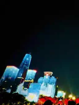 📸 Standing in the center of the square, the 360° three-dimensional light show is completely immersive. From "Chinese Red" to "Technology Blue," each shift draws gasps and applause from the crowd. The most moving moment is when the national flag soars above the buildings, and you look up to see the bright moon and lights shining together. The awe-inspiring moment is indescribable.