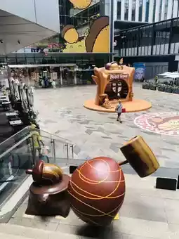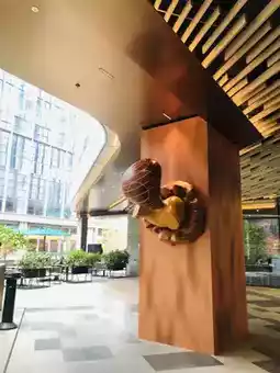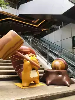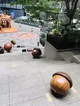 Vanxiang Foodie, located at Sungang Station, has a hidden gem within its outdoor space! Several incredibly adorable squirrel sculptures, either holding or guarding giant chestnuts, are playful and eye-catching.