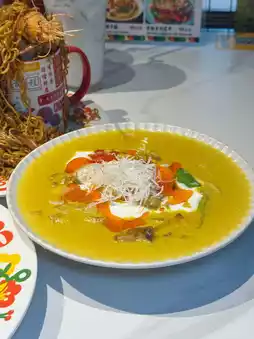 Sour and spicy just right, orange-red and translucent soup, with coconut milk sweetness and lime fresh fragrance, seafood with shrimp, mussels and squid rings, fresh and bouncy, every mouthful of soup fresh and rich.