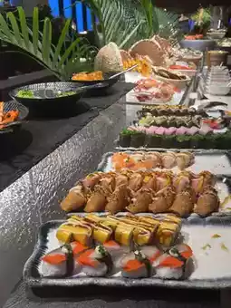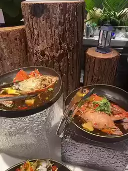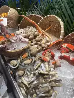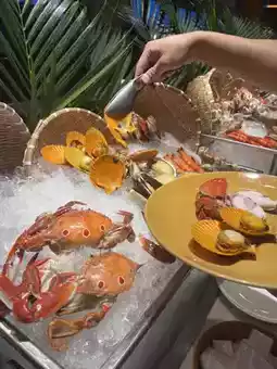 Stepping into the hotel restaurant, the modern and elegant design immediately put us at ease. The buffet spread, featuring a wide variety of fresh seafood, felt like a gift from the ocean, captivating every diner's attention. Fresh oysters, live shrimp, crab legs, and scallops exuded the aroma of the sea, making it hard to resist diving in.