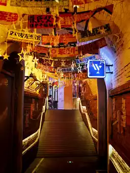 The colorful 1980s-style building evokes the atmosphere of old China. Inside, you'll find a variety of local restaurants and plenty of photo opportunities.