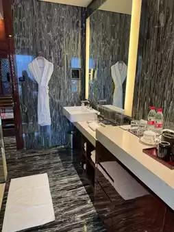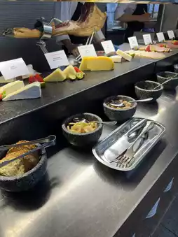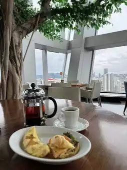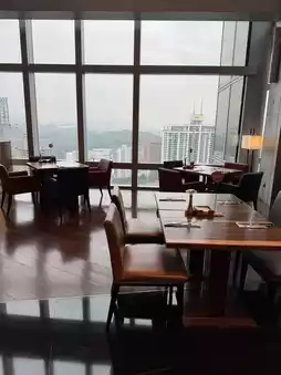 I really appreciated that the restaurant is on the top floor of the hotel, offering an incredible view, high ceilings, and controlled crowd flow.