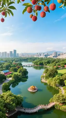 At dusk, climb the Nine-Bend Bridge, where the sunset glow dyes the horizon red, the musical fountain dances to the rhythm, and children laugh and run around. Sitting on a bench at this moment, eating a seasonal late-ripening litchi, its sweet juice bursts forth, filling your mouth with happiness.