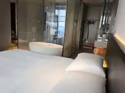 Just after the October Golden Week, I checked into the Renaissance Shenzhen Bay Hotel, which is conveniently located just a 1-minute walk from Exit B1 of Gaoxin South Metro Station. The hotel lobby is on the 50-something floor (I forgot the exact floor 😅). The staff were courteous, and the entire lobby features floor-to-ceiling glass windows, offering an unobstructed panoramic view. The room also had a great view with no obstructions. The room's design was unique, with the shower located in the center of the room and a large bathtub. In the afternoon, I took the metro to Sea World Station, where the main attraction is the old cruise ship, Minghua. Entry is free, and inside there are shops, food outlets, and more. In the evening, there was a music fountain show, but each performance only lasted 5 minutes. The entire Sea World area is filled with numerous restaurants, making it hard to decide where to eat.