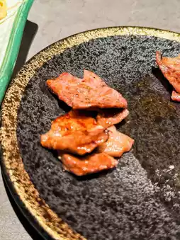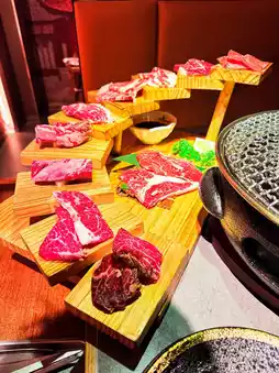You don't have to move your hands at all. The master helps you grill it just right. The meat is tender and juicy. You don't want to stop eating