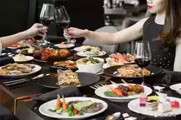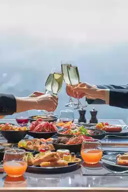 The next day, we visited the 95th-floor Social Restaurant, where the room's view continued to shine. While dining, we gazed out the window at the city's scenery, instantly maximizing both visual and culinary delights. The lunch buffet offers a truly exquisite blend of exquisite cuisine and sumptuousness. Fresh seafood is prepared live by the chef at the seafood counter, paired with specially crafted sauces, allowing you to savor the fresh, sweet flavors of the ocean in every bite. Over ten categories are also available, including Chinese roast meats, Western cold cuts, a selection of Japanese dishes, signature Indian dishes, and exquisite desserts. From savory to sweet, hot to cold, each dish is crafted with quality and taste in mind. Enjoy a relaxing lunch amidst breathtaking aerial views.