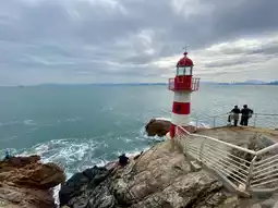 The lighthouse's striking red and white colors serve as a signal for ships returning home and a guidepost. Set against the backdrop of the azure ocean, it creates a romantic atmosphere and is an ideal spot for photo opportunities.