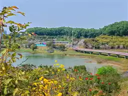 The park also features a stunning lakeside view, with yellow and red flowers blooming by the water. Modern buildings in the distance create a perfect backdrop, making every snap a cinematic masterpiece. Remember to bring a bubble machine or balloons as props to add more life to your photos~