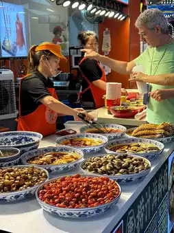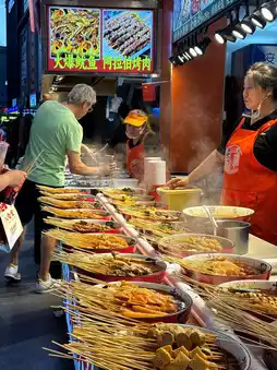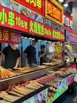 When it comes to food in China, I think barbecue is a must-try. It's a simple and convenient meal. Chinese people often enjoy straightforward dishes, especially at street food stalls, where they eat freshly cooked food right on the spot. Today, we are at a walking street, and I have to say I really like this restaurant. The prices are affordable, and the taste is quite good. The mala spice is not overly intense, making it a flavor that suits Thai people well. If you are planning to visit China, don't forget to check out this post as a guide for your trip.