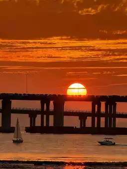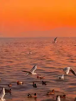 The orange-red sunset dyes the sea surface into flowing fragments of gold