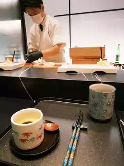 Jyukan offers a variety of sashimi and sushi, including thick cuts of salmon, tuna, and Hokkaido surf clams. The rice is soft and sticky with a balanced vinegar flavor. The sushi is hand-pressed by the chef on-site, giving it an authentic Japanese sushi bar vibe. Each plate is exquisitely presented.