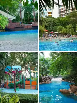 🏖️The outdoor area feels like a trip to Bali! The 2,000㎡ sandy pool🏊♀️ is covered with fine Sanya sand, and the replica of the "Santa Maria" sailboat⛵️ is perfect for photos! After a day of fun, unwind with a spa treatment, or hit the 24-hour gym overlooking lush greenery. This place truly understands the romantic escape every girl dreams of💕.