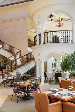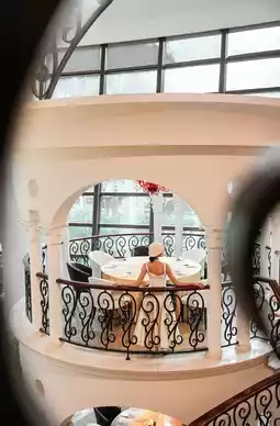 🚪The interiors feel like stepping into a European castle! The high glass dome lets in fragmented light, vintage patterned tiles paired with rattan chandeliers, 🚶and the wooden spiral staircase curves gracefully. Wearing a flowing dress while walking up feels like a movie scene of a "princess descending the stairs"🎬. The guest room's vanity mirror is framed with intricate details, velvet cushions exude warmth, and lounging on the balcony with friends👯, chatting and taking aesthetic photos, is pure bliss.