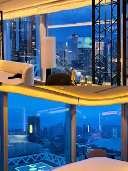 - Sky-high aesthetics: The lobby features a soaring ceiling that pierces the clouds, with "God rays" streaming through the floor-to-ceiling windows on sunny days. At night, it transforms into a shimmering glass palace, perfect for snapping shots worthy of a scene from "Urban Elite"