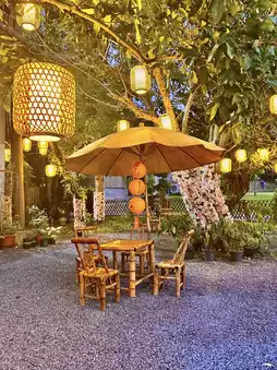Bamboo tables and chairs + lanterns 🏮 create perfect photo moments in minutes