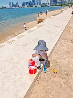 If you have kids, don’t miss the beach sandpit here [Love], it’s super large, so you can dig in the sand by the sea without going to Dameisha or Xiaomeisha.