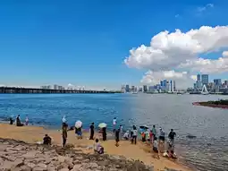 You can stroll along the coastal trail to the sea. On one side is the modern city skyline (such as Excellence Qianhai No.1, China Resources Qianhai Tower), and on the other side is the Lingdingyang sea, offering a broad view. The trail is flat, suitable for cycling or jogging. There are paid electric carts inside the park.