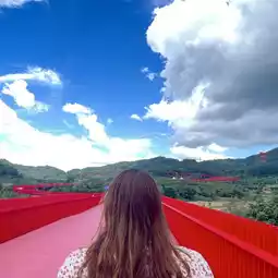 We went to check out the stunning Red Ribbon bridge at Hongqiao park.