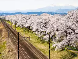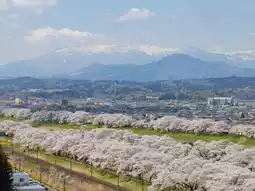 Take a stroll through the magical cherry blossom tunnel at Funaoka Castle Park😊 Don't miss the view from the hilltop, where you can see the Hitome Senbon Zakura lining the Shiroishi River, set against the backdrop of the snowy Zao mountain range❗ Take your time to enjoy the cherry blossoms from every angle🌸